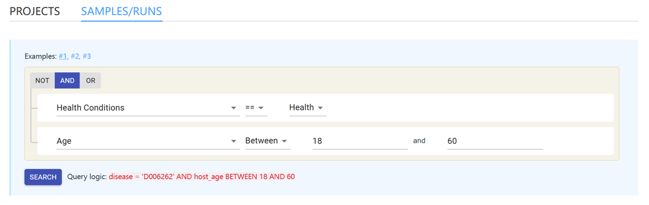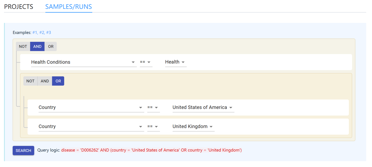 For example, to search for samples that were taken from healthy individuals that are either American or British, we need to: